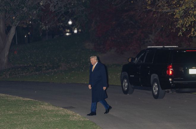 11月14日,在美国首都华盛顿白宫,美国总统特朗普在南草坪准备登机 图:新华社