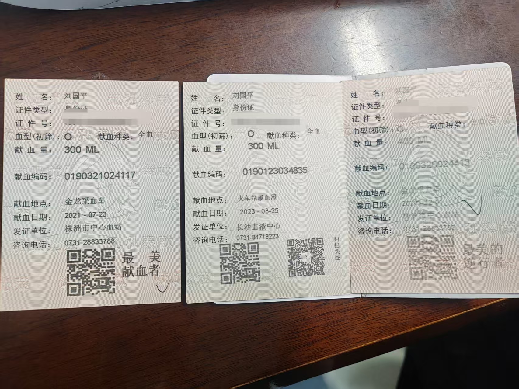 刘国平多次参与义务献血。