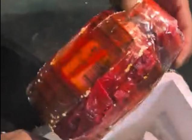 经现场开箱查验,藏在辣椒酱里的3块金条和3颗金珠被如数追回。